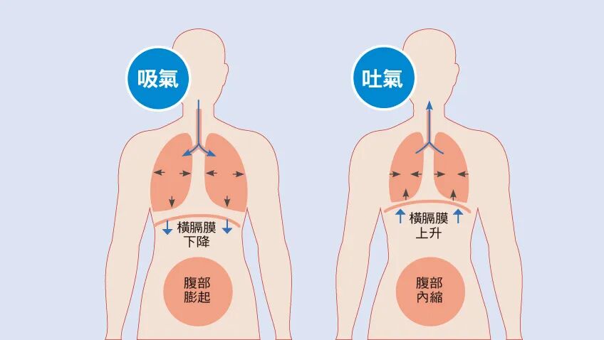 让我们先从基础内容开始。研究表明情绪与呼吸紧密相关。一方面,情绪会引发不同的呼吸模式,例如我们在恐惧时会屏住呼吸,释然时会松一口气,在紧张时你的呼吸会变得更快、更浅、更不规则,而在平静或者放松时你的呼吸会变得更慢、更深、更长。另一方面,情绪与呼吸之间的关系并不是单方面的,正如情绪可以引发不同的呼吸模式,呼吸也可以影响甚至改变人们的情绪。平时我们很少会注意到自己的呼吸。呼吸是少数几个既可以在无意识的状态下自动进行也可以有意识地控制的身体过程之一。通常情况下,呼吸是一个无意识的过程,你无须刻意考虑,即使在你睡觉的时候它也一直进行。然而我们也可以有意识地控制自己的呼吸,例如让呼吸变长或变短、屏住呼吸等等,这种行为被称为呼吸控制。我们有很多呼吸控制的技巧,我们可以根据自己的目的选择其中合适的技巧。在此我们将学习所谓的膈式呼吸,有时也被称为深呼吸,它是控制压力水平的最基本、最有效的技巧之一。让我先解释一下什么是膈式呼吸。常见的呼吸类型有两种:胸式呼吸(chest breathing)和膈式呼吸(diaphragmatic breathing)。胸式呼吸的特点是使用上胸部肌肉进行呼吸,呼吸偏浅、偏快。这种呼吸类型会减少摄氧量,使呼吸变得短促并使人保持警觉,它通常出现在人们锻炼之后或面临紧急情况时。但许多人已经养成习惯,在大多数时候都采用胸式呼吸,这是不正确的,因为这种呼吸类型会让身体处于压力状态。