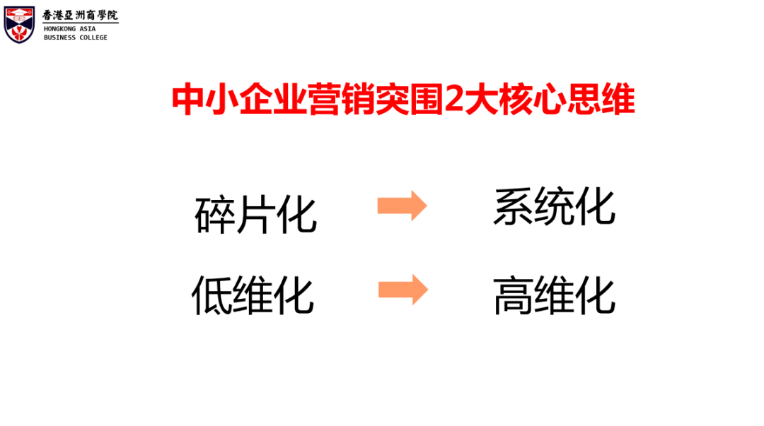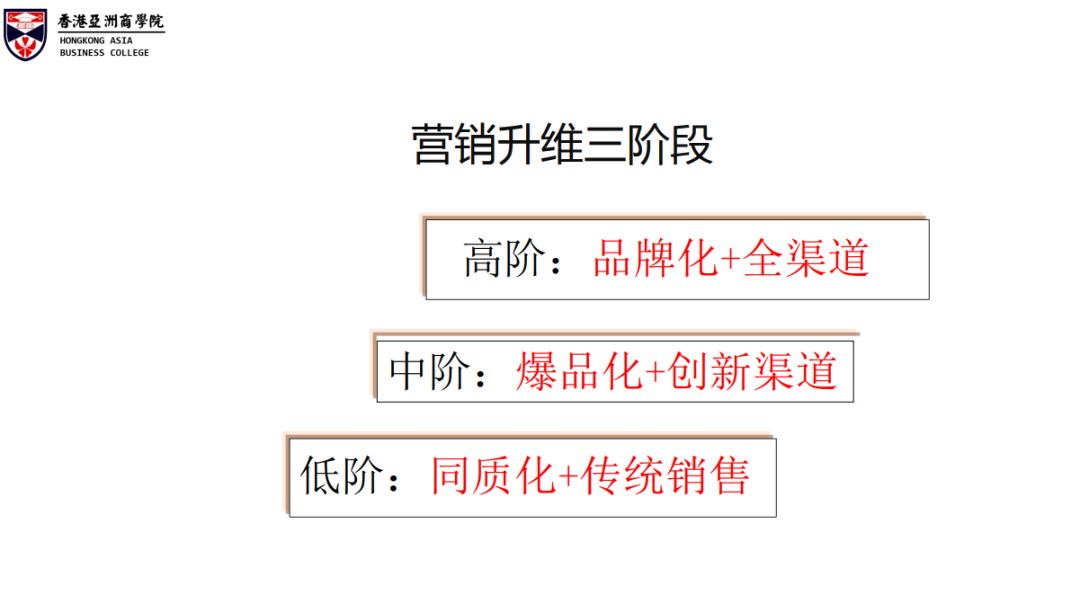 2023年9月17日,香港亚洲商学院EMBA高级工商管理硕士班聘请——王佳鑫老师,分享《总裁营销战略管理》课程。 ·高维营销咨询 实战专家 ·国内多家知名企业 营销战略特聘顾问 营销是一个系统工程,它包含:市场调研、战略规划、品牌策划、产品策划、渠道建设、销售推广、营销管理等多个内容。 营销的产生 1905年,美国宾夕法尼亚大学教师克洛伊西讲过一堂主题为《产品的市场营销》的课程,这被广泛认为是营销作为学术词被第一次使用。 1921年,美国哈佛大学的赫杰特齐以市场营销学命名的教科书出版。 1937年,美国市场营销协会(AMA)成立。 过程 在欧美国家完成第一次、第二次工业革命之后,工业体系日渐成熟,在激烈的市场竞争之下,形成了系统的营销学理论。营销是竞争的产物! 本次课程中,王老师指出,企业营销要打造超级爆品。 超级爆品, 是指销量火爆、口碑火爆、复购火爆的,极具竞争力的产品或服务。 而打造超级爆品的重点是核心卖点: 什么是“核心卖点”?能够与竞争对手形成明显区隔,并吸引目标客户购买的价值点。核心卖点,就是给客户一个选择你而不选择别人的理由! 定战略 立品牌 推爆品 品牌的力量 1、消费者在购买产品时,更愿意优先选择品牌。 2、消费者乐意为品牌支付更高的溢价。 3、前三名的品牌可以占到行业市场份额的50%以上。 4、美国85%的市场份额已经被品牌公司所占领。 5、世界上最值钱的品牌是苹果,品牌价值为2400亿美元。 什么是品类:客户心智里一个一个的小格子什么是品牌:呆在每一个小格子里的成功者 简单地说,品牌定位就是一种让你找到最佳机会点,让你的品牌占据客户心智第一的营销技术 1、开创:有需求,无品类 2、抢占:有品类,无品牌 3、细分:老品类,无细分(未满足小众/个性需求) 品牌定位六大步骤 (一)定品类 (二)定差异 (三)定对手 (四)定源点人群 (五)定源点市场 (六)定源点渠道 “定差异”两大方法 1、从“物理特性”上找差异 2、从“市场特性”上找差异 运用传播学原理,结合企业自身情况,挑选最适合的传播渠道,让品牌迅速出圈,占领心智。 最后,王佳鑫老师强调,营销是一个系统工程,它包含:市场调研、战略规划、品牌策划、产品策划、渠道建设、销售推广、营销管理等多个内容。,大部分人只进行到前面2步,真正要实施落地下一定要有完整的营销策略和品牌规划,要深入了解产品的差异化,做不同的产品营销,深入做品牌才做大做强。 香港亚洲商学院 香港亚洲商学院成立于2003年,是经香港特 区政府批准注册成立的一所从事高等教育、 研究生课程、学术交流及管理咨询服务的学 术机构。 点击蓝字丨关注我们 香港亚洲商学院MBA EMBA本部中心欢迎你! Add:东莞市松山湖沁园路17号北大B栋8楼 Tel:0769-8997 8012;15814187245 Email:hkabc_emba@163.com
