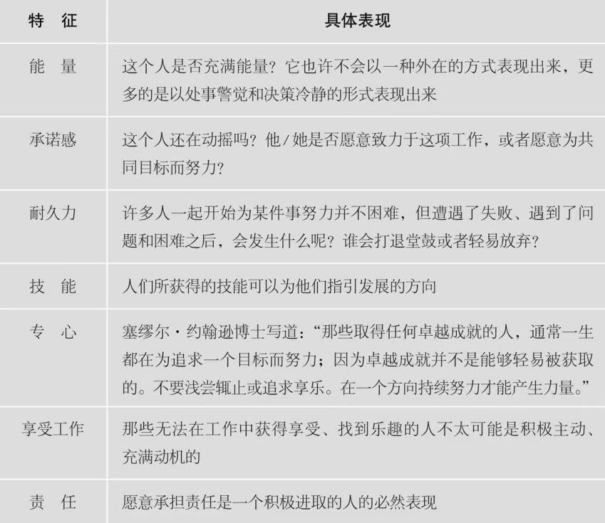 你挑选出来为你工作的人,需要像约翰·班扬(John Bunyan)描述的那样:直至被激发并发挥出全部的天赋,才会使自己满意。班扬还补充道:“天赋平平却尽力发挥,强过天赋异禀却未尽其用。”在这里,我们可以将这句话解读为:在你挑选员工时,资质平平却积极上进的人,相比天资聪颖却消极怠工的人,是更好的人选。在当今世界,你确实应该寻找那些热爱自己所做事情的人,或者有能力爱上所做事情的人。如果你善于发现,通常会有一些清晰的指示。